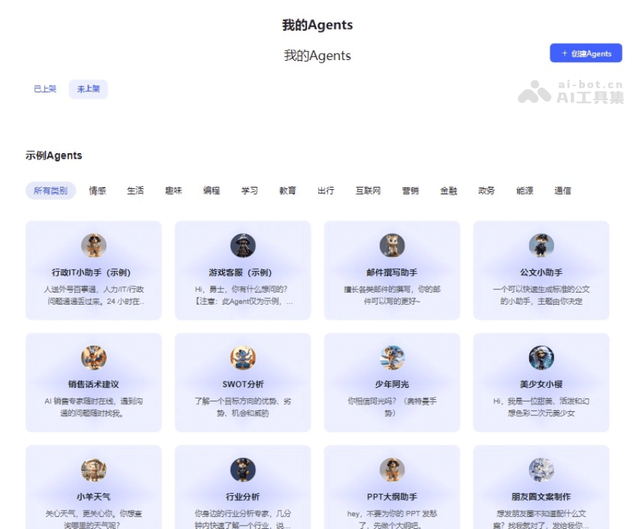 - 个人助理:创建个人助理 Agent,帮助用户管理日程、提醒重要事件、搜索信息等,提高个人效率。
