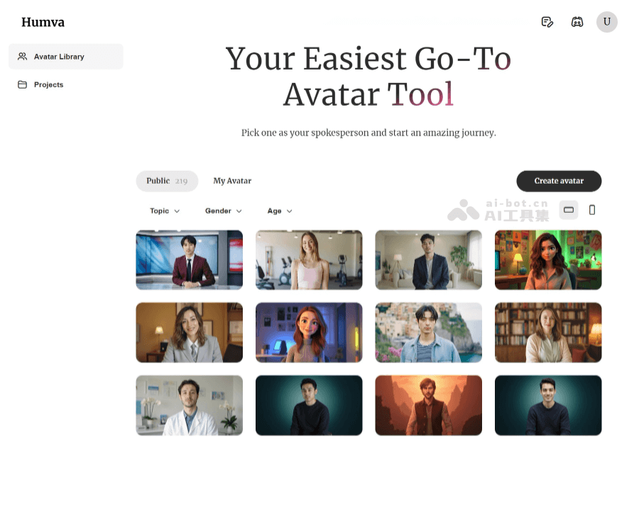 Humva 是创新的AI数字人生成工具,专注于为用户提供个性化数字形象和视频内容制作服务。通过简单易用的界面,用户能快速创建专属的数字人,支持多种背景、性别、行业和服装选择,满足不同场景需求。 Humva 的核心优势在于强大的定制化功能和高效的内容生成能力。用户可以输入脚本,快速生成高质量的视频内容,适用于社交媒体、产品推广、教育培训等多种场景。
